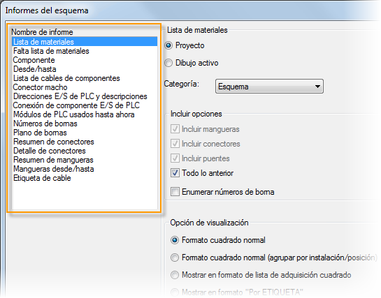 La creación de un informe es una operación sencilla. Puede seleccionar si desea crear un informe de esquema o de armario y