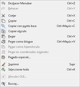 La forma en que se muestra un elemento de menú indica su disponibilidad en el programa.