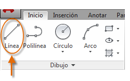 La línea es el objeto más básico y habitual en los dibujos de AutoCAD. Para dibujar una línea, pulse la herramienta Línea.