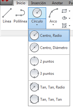 La opción por defecto del comando CIRCULO consiste en especificar un punto central y un radio.