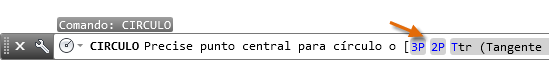 Si lo prefiere, también puede escribir CÍRCULO o simplemente C en la ventana de comandos y hacer clic para elegir una opción. Si lo hace, puede especificar un punto central, o bien hacer clic en una de las opciones de comando resaltadas, tal y como se muestra a continuación.