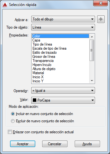 Aplica los criterios de filtro a todo el dibujo o al conjunto de selección actual (si existe).