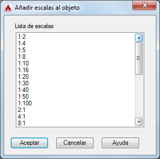 Muestra la lista de escalas que se pueden añadir al objeto anotativo seleccionado.