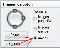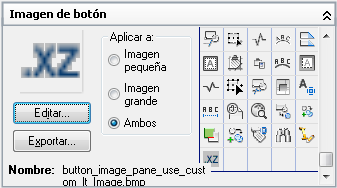 En el panel Imagen de botón, bajo Aplicar a, seleccione una de las tres opciones de asignación de imágenes: Imagen pequeña, Imagen grande o Ambas.
