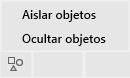 Aislar objetos de la barra de estado a fin de acceder a las opciones para ocultar objetos, aislar objetos y anular el aislamiento de objetos.