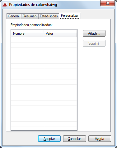 Muestra el cuadro de diálogo Añadir propiedad personalizada, que permite especificar el nombre y el valor de la nueva propiedad personalizada. El nombre debe ser único. El valor puede dejarse vacío.