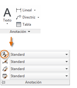 Al igual que otros elementos de anotación, el texto de líneas múltiples proporciona una gran cantidad de parámetros. Puede guardar estos parámetros como un estilo de texto mediante el comando ESTILO y, a continuación, acceder a los estilos de texto haciendo clic en la flecha de la lista desplegable del grupo Anotación. El estilo de texto actual se muestra en la parte superior de la lista desplegable.