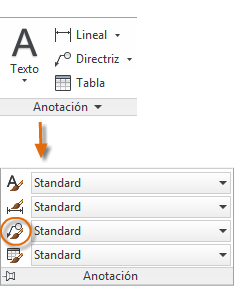 Puede crear sus propios estilos de directriz múltiple desde la lista desplegable del grupo Anotación o introduciendo ESTILDIRECTRIZM en la ventana de comandos.