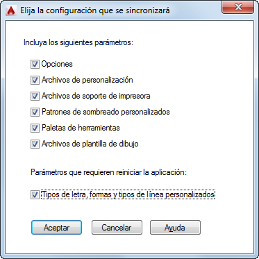 Sincroniza los perfiles de usuario y todos los demás parámetros especificados en el cuadro de diálogo Opciones.