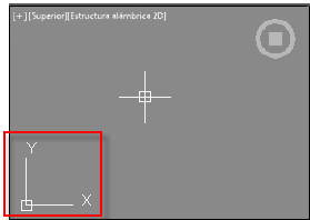 El área de dibujo muestra un icono que representa el eje XY de un sistema de coordenadas rectangular denominado sistema de coordenadas personales o SCP.