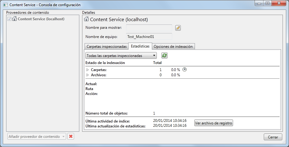 Las estadísticas se actualizan cada ocho segundos para las carpetas locales. Para las carpetas de red, debe realizarse manualmente la actualización de la información haciendo clic en Actualizar .