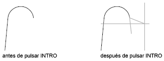 Si lo último que ha dibujado es un arco, su punto final define el punto inicial de la línea y ésta se dibuja tangente al arco.
