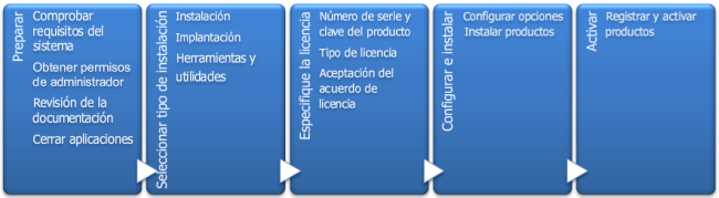 En el diagrama siguiente se muestran las partes principales del proceso de instalación: