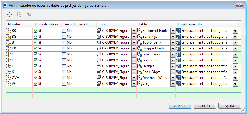 Si el recolector de datos no admite el uso de un conjunto de códigos de líneas, se utiliza una convención (como el comando de figura BEG) para indicar el inicio de una línea de figura, como puede ser el caso de algunas herramientas de conversión de recopilación de datos que no admiten de momento las nuevas funciones de datos de campo al dibujo terminado de AutoCAD Civil 3D 2010.