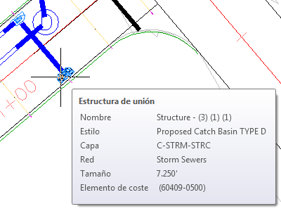 - En el dibujo, seleccione uno de los sumideros de la carretera.