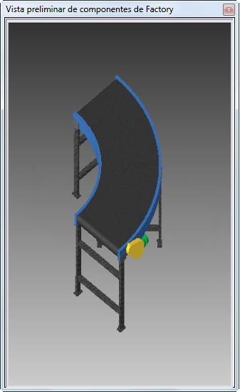 La opción Vista preliminar abre una ventana Vista preliminar de componentes de la fábrica aparte que muestra el componente seleccionado. Para activar y desactivar la ventana Vista preliminar de componentes de la fábrica, haga clic en