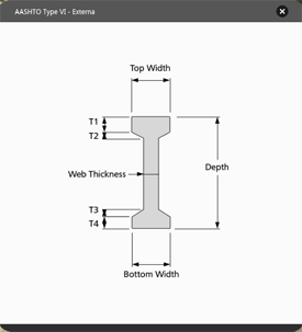 - Haga clic en una imagen de grupo de jácenas externas o internas para ver un esquema de jácenas y visualizar la paleta Propiedades.