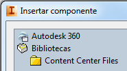 - En el cuadro de diálogo Insertar componente, seleccione Autodesk 360 en la parte superior del panel de ubicaciones del cuadro de diálogo.