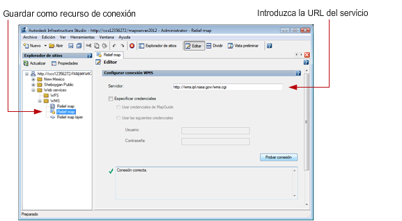 - En Configurar conexión de WMS, especifique la dirección URL con la que conectar.