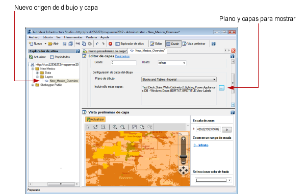 Autodesk Infrastructure Studio crea un origen de dibujo y una capa para cada archivo DWF.
