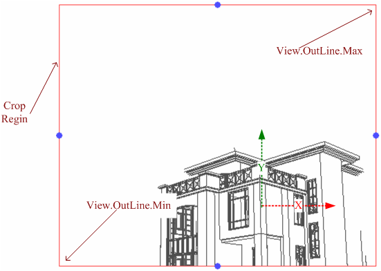 Once the view is created, you can resize the crop box to view different portions of the model. You can also change the default orientation. The API does not support modifying the viewing coordinate system.