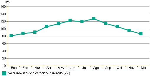Al revisar un análisis energético en el cuadro de diálogo Resultados y comparación, este diagrama muestra la estimación de demanda máxima de electricidad por mes del proyecto.