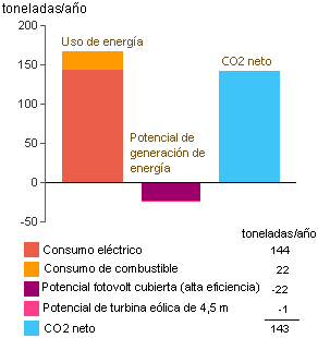 CO2 neto | Total de emisiones de CO2 derivadas del consumo energético del proyecto menos el valor de Potencial de generación de energía. |