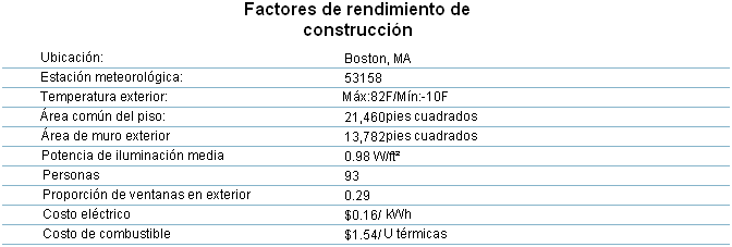 Al revisar un análisis energético en el cuadro de diálogo Resultados y comparación, esta tabla resume los principales factores que afectan al consumo de energía del modelo analizado.