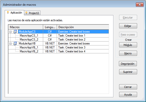 Un módulo es un grupo de macros. Las macros pueden ser independientes dentro del módulo en que se ejecutan, así como compartir código y utilidades. Se organizan en el Administrador de macros bajo el módulo principal.