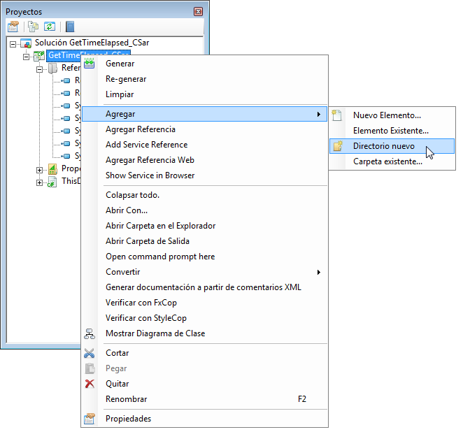 En este ejemplo, el explorador de proyectos del IDE actualizado GetTimeElapsed_CSharp contiene: