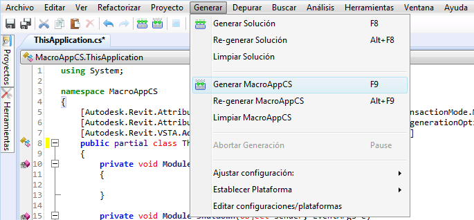 - Cierre el IDE de macros de Revit.