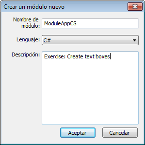 Se abre el cuadro de diálogo Crear un módulo nuevo.