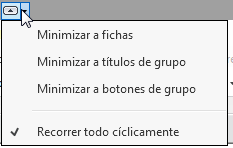 | especificar el método preferido para minimizar la cinta de opciones | a la derecha de las fichas de la cinta de opciones, hacer clic en la flecha de la derecha y seleccionar el comportamiento deseado: Minimizar a fichas, Minimizar a títulos de grupo, Minimizar a botones de grupo o Recorrer todo. ![]() |