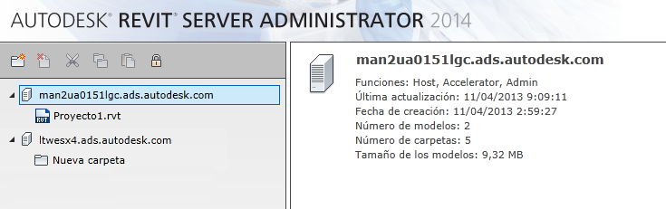 Utilice Revit Server Administrator para administrar las carpetas y modelos centrales en los Revit Server Host y para bloquear modelos para realizar tareas administrativas.