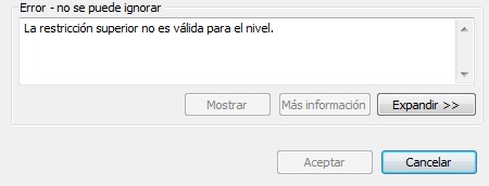 Si se produce algún error mientras trabaja, Revit muestra cuadros de error para informar de los problemas.