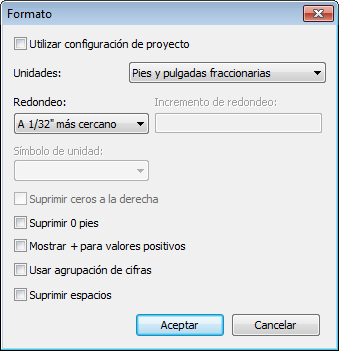 La opción Utilizar parámetros de proyecto está seleccionada por defecto. Esto significa que el valor se muestra en función del parámetro Unidades del proyecto. Consulte Unidades de proyecto.
