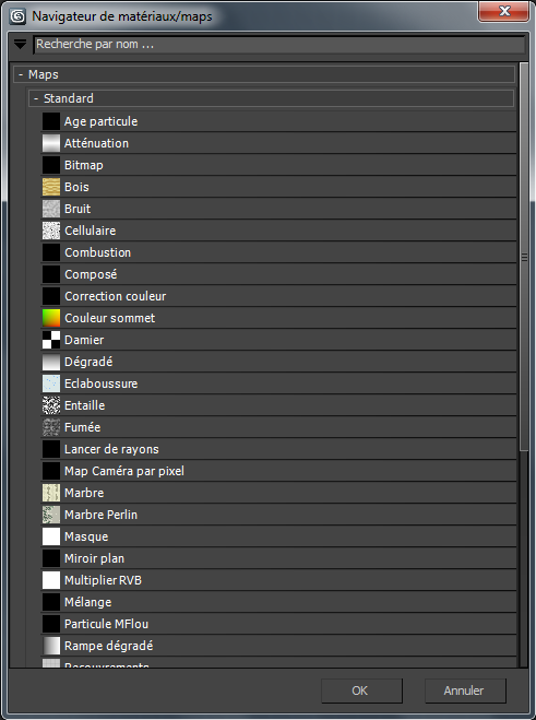 3ds Max ouvre le Navigateur de matériaux/maps.