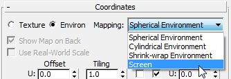 Le mode de mapping par défaut d'une texture d'environnement est Environnement sphérique, mais nous voulons afficher l'image du désert en toile de fond.