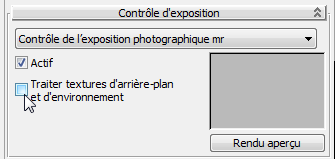 - Dans le panneau déroulant Contrôle d'exposition, vérifiez que l'option Traiter textures d'arrière-plan et d'environnement est désactivée.