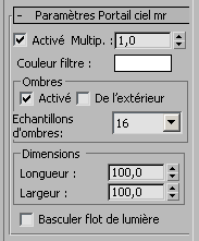 Sélectionnez l'objet Portail ciel en cliquant sur son gizmo au centre de la porte. Dans le panneau déroulant Paramètres Portail ciel mr, activez les ombres.