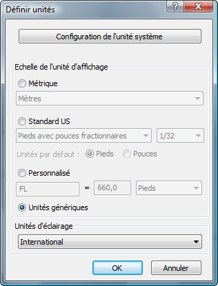 - Dans la boîte de dialogue Définir unités, cliquez sur Configuration des unités système.