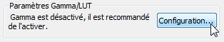- Faites défiler le panneau déroulant Contrôle de l'exposition photographique mr jusqu'en bas, de façon à voir la zone Paramètres Gamma/LUT. Si le gamma est désactivé, cliquez sur Configuration. Si le gamma est déjà activé, passez directement à l'étape 7.