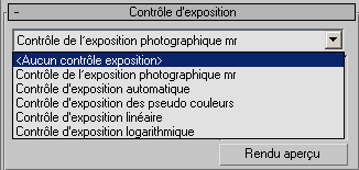 Contrôle d'exposition. 3ds Max ouvre la boîte de dialogue Environnement et effets.