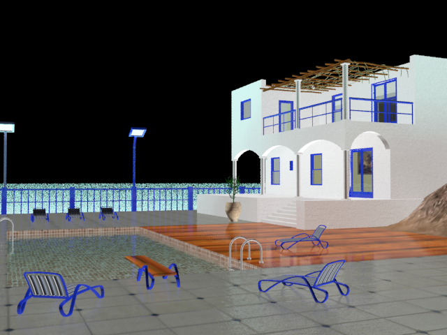 Le résultat est bon, mais les zones intérieures, derrière les fenêtres et les portes de la villa, sont plus sombres qu'elles ne devraient. Dans la prochaine leçon, vous apprendrez à résoudre ce problème en prenant de la lumière extérieure et en la dirigeant vers le bâtiment.