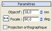 - Accédez au groupe de fonctions Modify (Modifier). Dans le panneau déroulant Paramètres, définissez la valeur Objectif sur 18,0 mm et la valeur Focale sur 90,0 degrés.