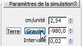 - Dans le panneau déroulant Paramètres de la simulation, cliquez sur Gravité pour réactiver cette option.