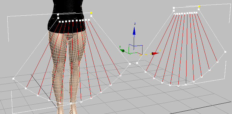 Le résultat est un maillage beaucoup plus dense, qui vous permettra de donner de la fluidité à la jupe.