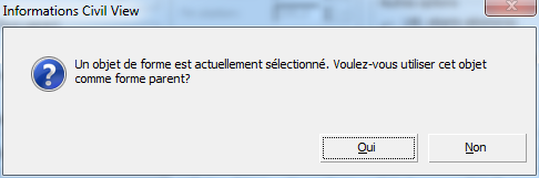 Editeur de style de positionnement d'objet. 3ds Max Design vous invite à utiliser la forme sélectionnée comme forme parent.