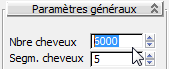 - Faites défiler la fenêtre vers le haut afin d'afficher le panneau déroulant Paramètres généraux. Remplacez la valeur par défaut du champ Nbre cheveux (10 000) par 6000.