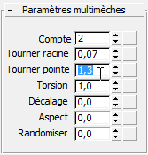 Remarque : Lorsque les paramètres Racine frisée et Pointe frisée sont l'un et l'autre égaux à 0,0, les poils sont complètement raides et suivent la normale du visage à partir de laquelle ils poussent.